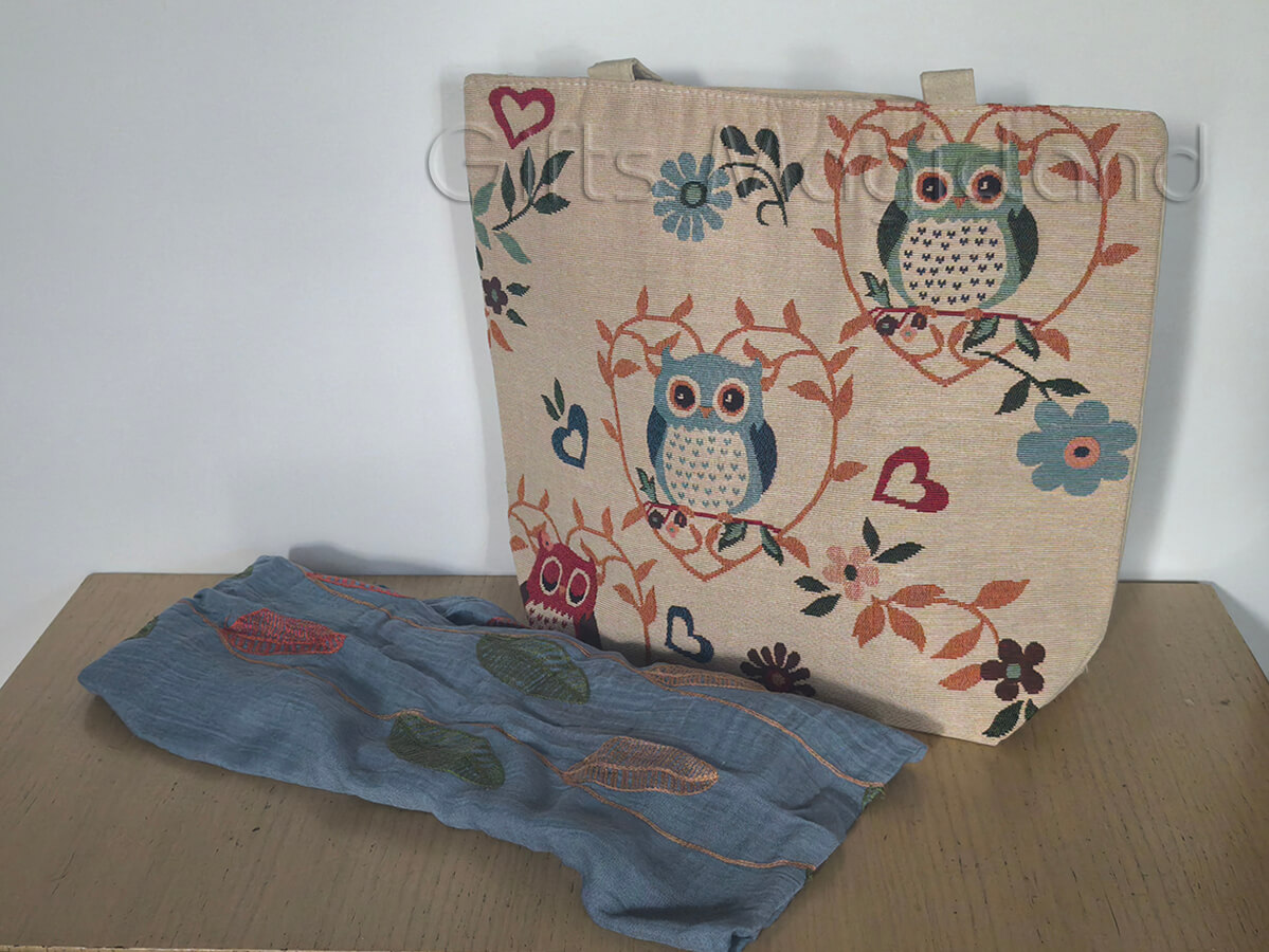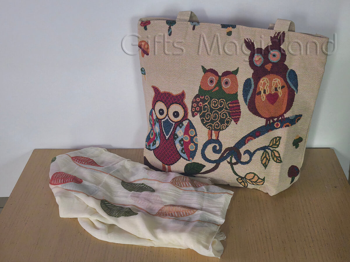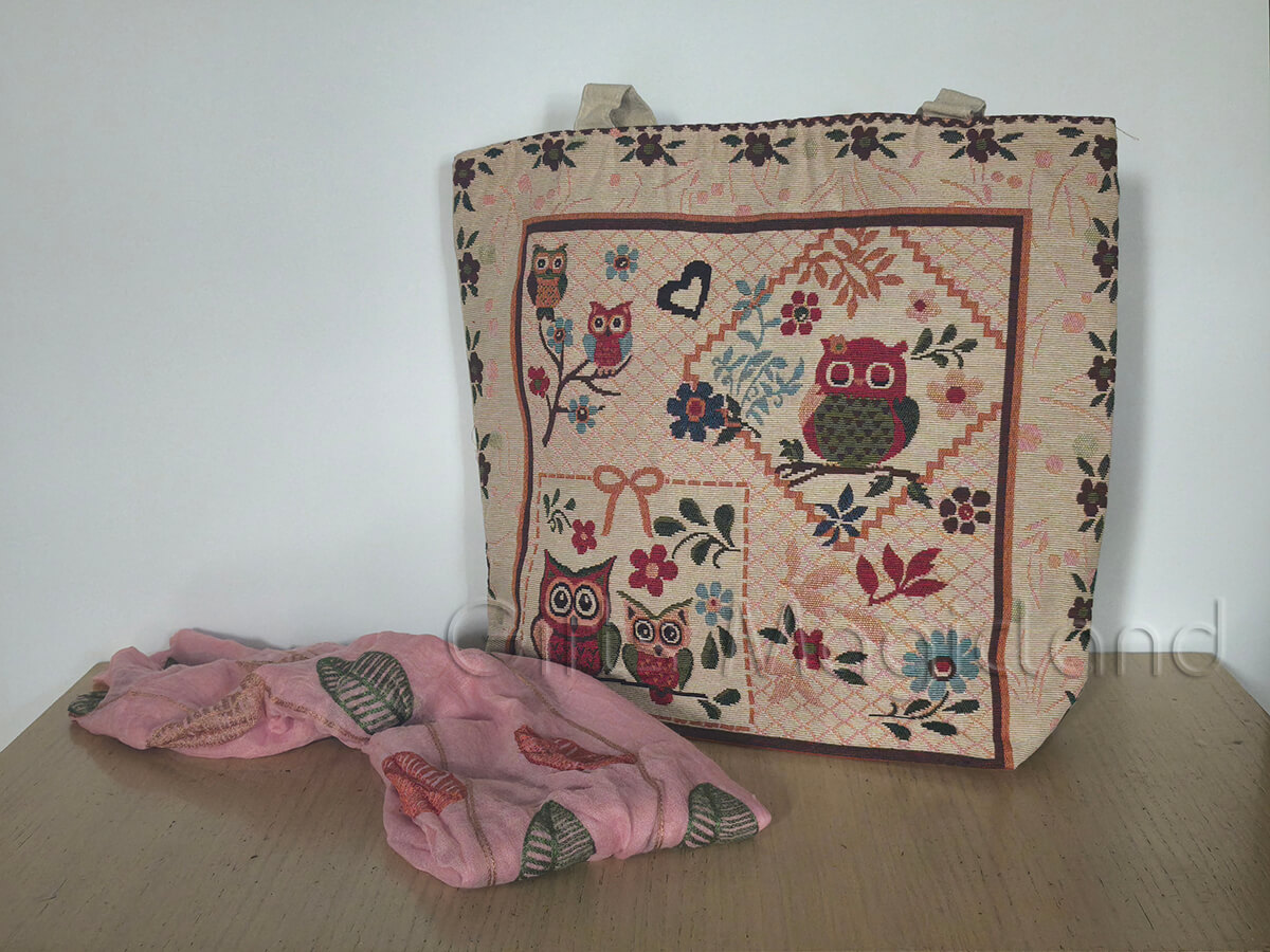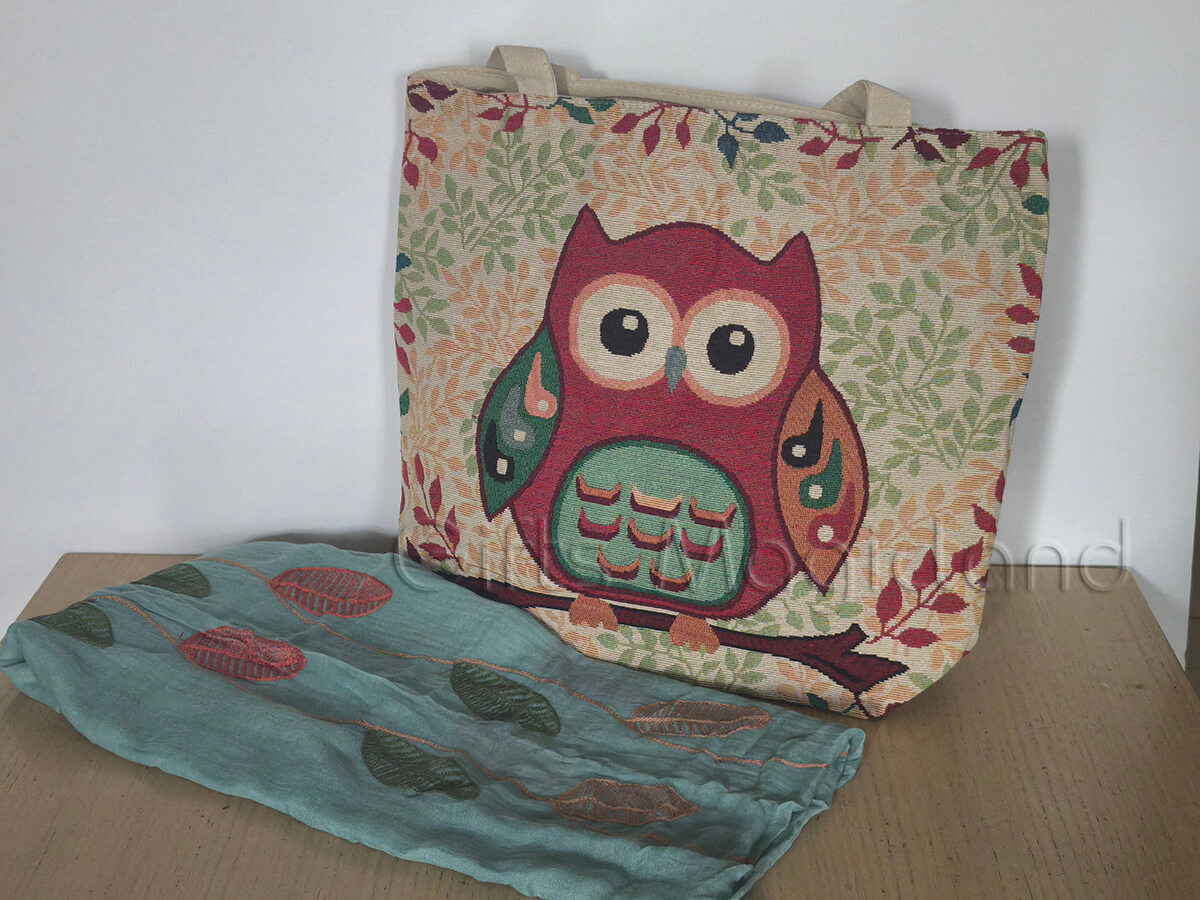 • 1 υφαντή τσάντα με κουκουβάγιες